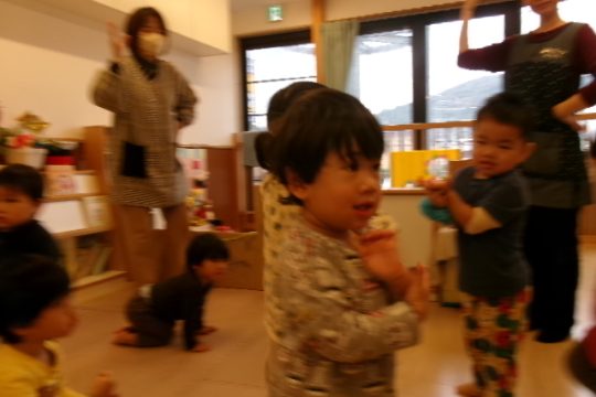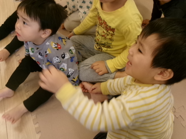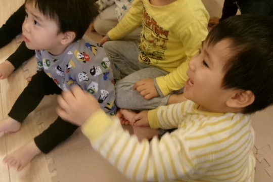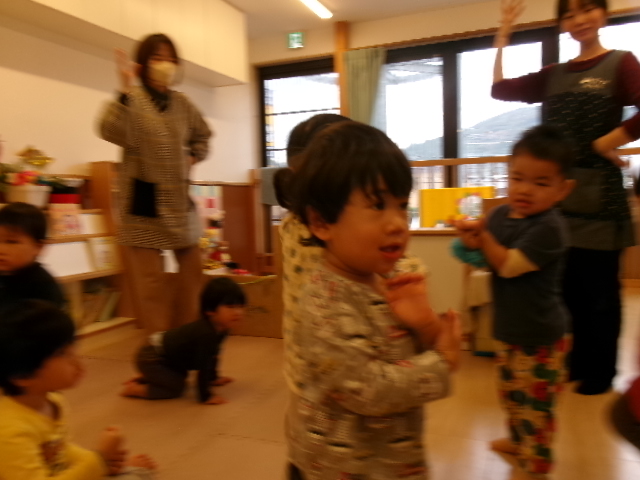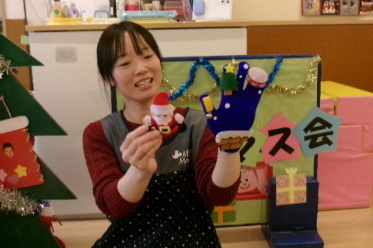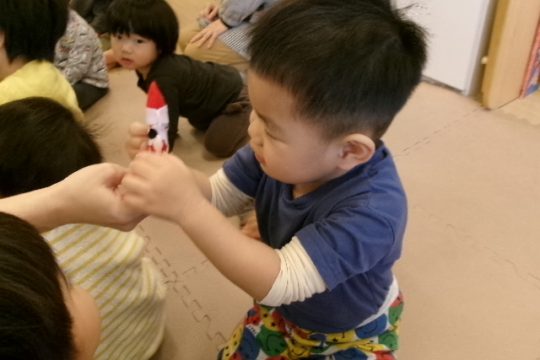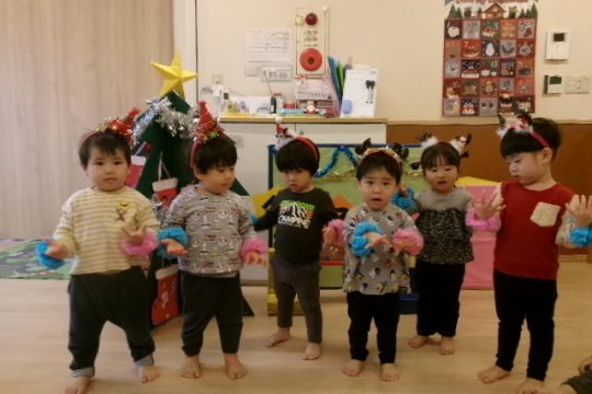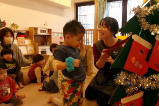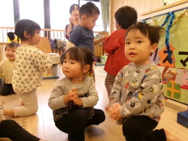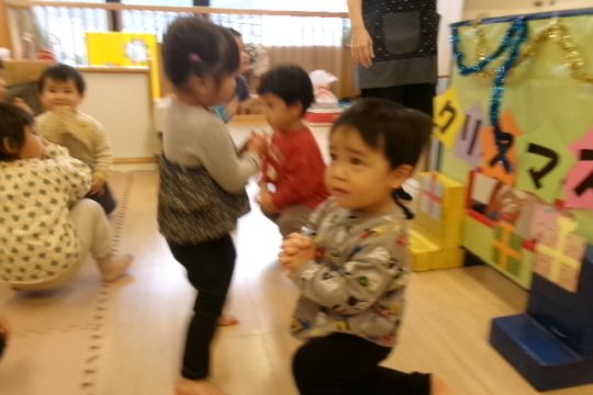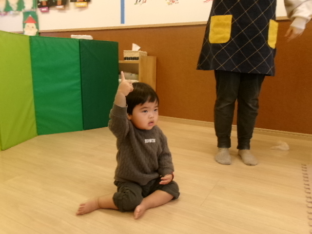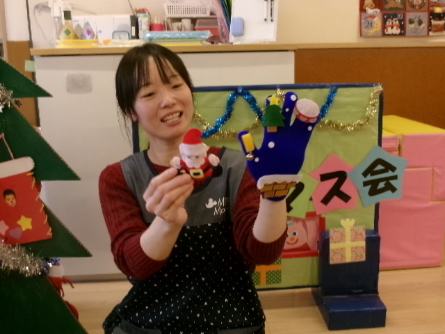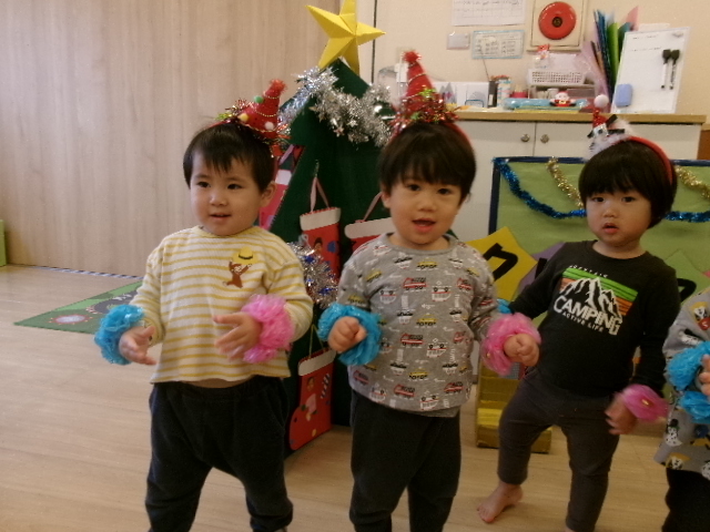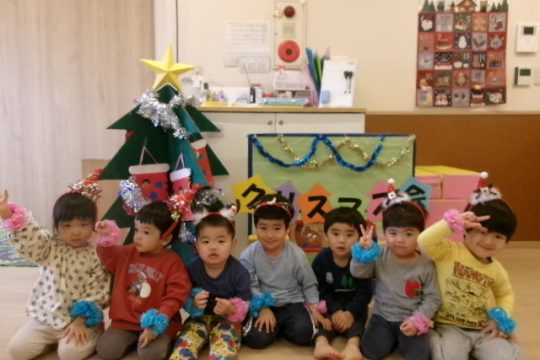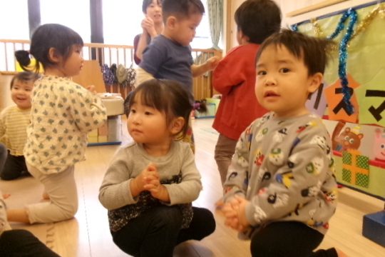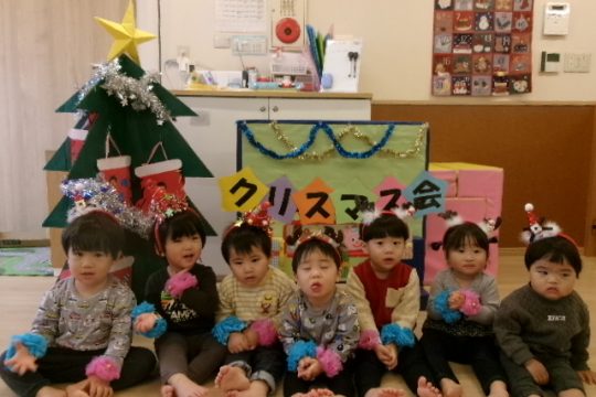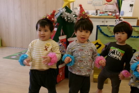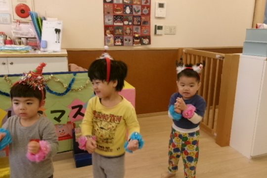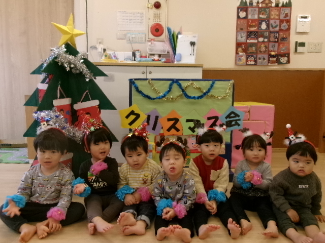 クリスマス会をしました。🎵あわてんぼうのサンタクロースの歌に合わせて、サンタの指人形が登場し、子ども達は興味津々。クラスからの出し物では、りす組さんは🎵きらきら星の歌、うさぎ組さんは🎵クリスマスのうたがきこえてくるよの曲に合わせて踊りを披露してくれました。最後は、みんながよく知っている🎵うさぎ野原のクリスマスの踊りをしてたのしいひと時を過ごしました。子ども達が作ったクリスマスブーツの中にサンタさんからのプレゼントが届くかな?