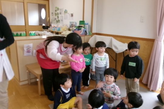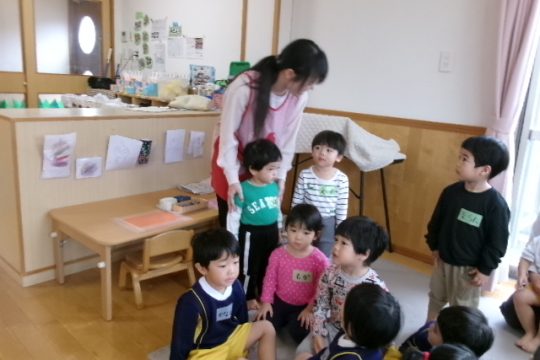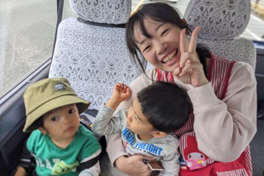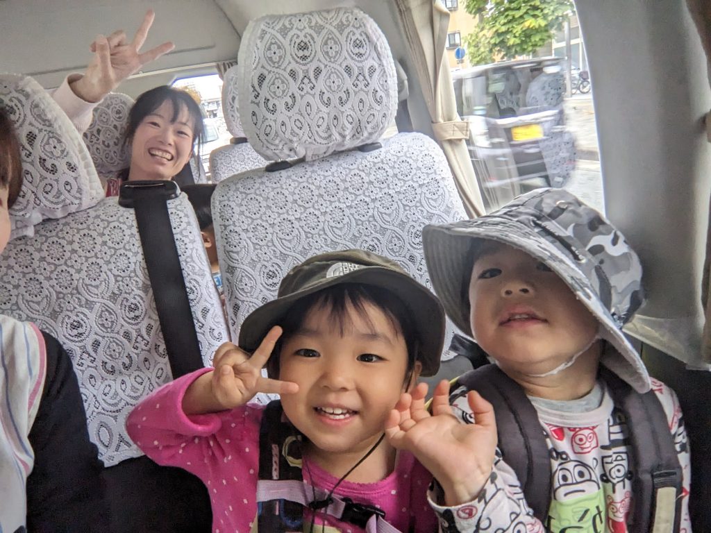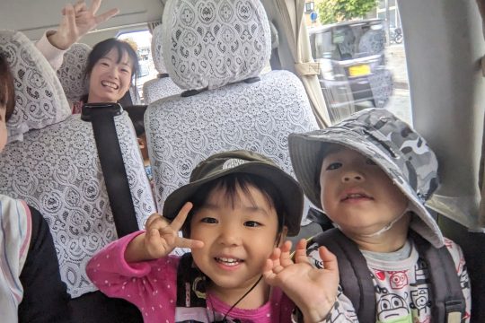 先日、うさぎ組の子どもたちが姉妹園である「なかがわ保育園」へ交流保育に出かけました。ジャンボタクシーに乗ってのお出かけに、子どもたちは朝からワクワク!車内では歌をうたったり、お友達とおしゃべりしたりと、元気いっぱいの様子でした。