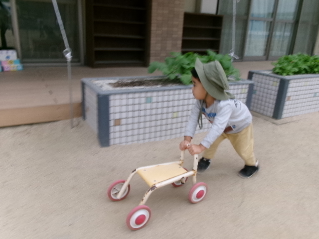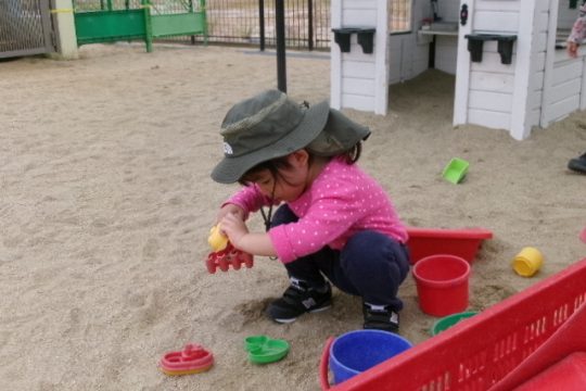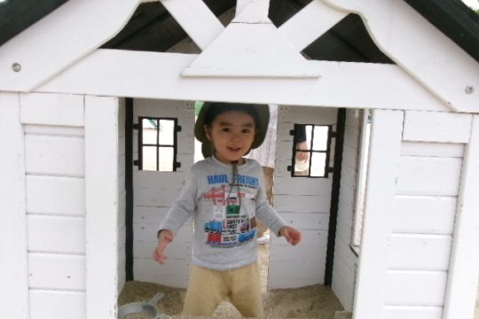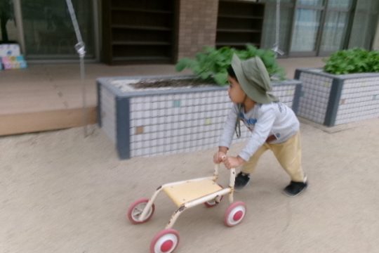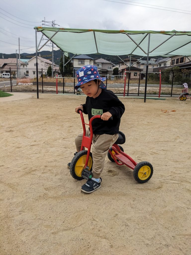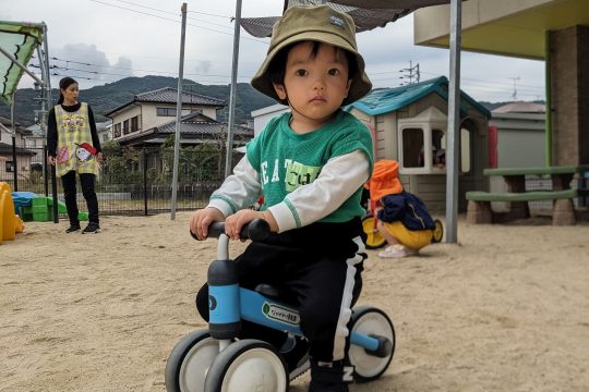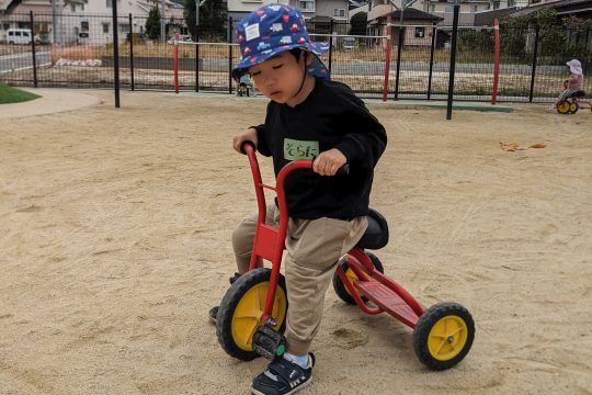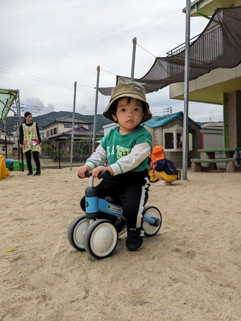 なかがわ保育園に到着すると、まずは自己紹介。ちょっぴり緊張した表情も見られましたが、広い園庭での自由遊びが始まると、みんなの目がキラキラ✨いろいろな遊具や乗り物に挑戦していました。砂場にあるままごとハウスもお気に入りでお店屋さんごっこに夢中の子どもたちもいました。